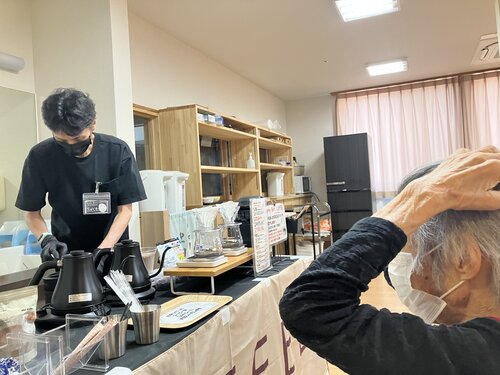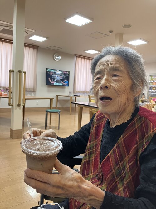 コーヒーのよい香りに包まれながら、そわそわと待たれるご入居者。