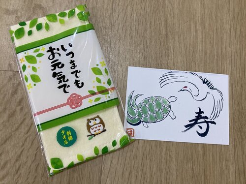 皆さまには、スタッフが心を込めて描いた絵手紙と、“福を呼ぶ”とされる