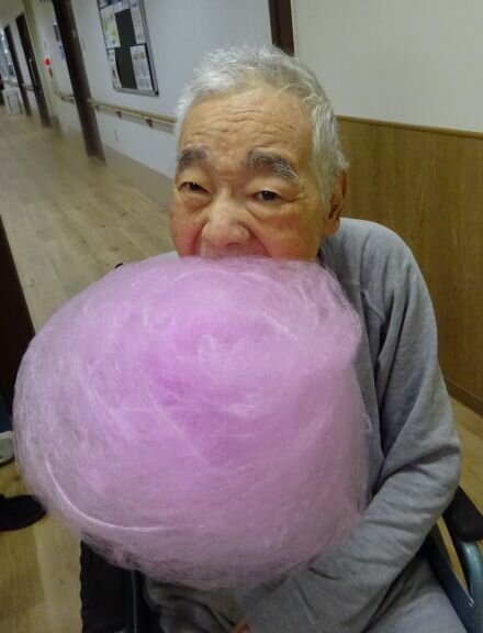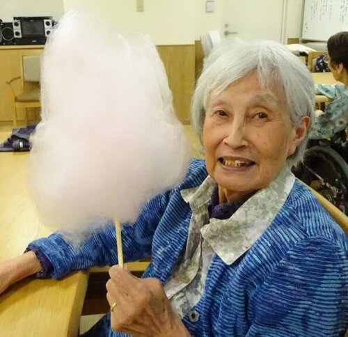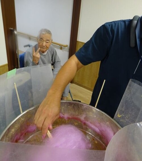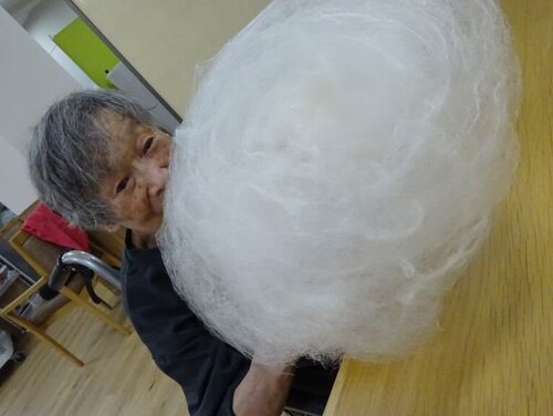 ふわふわとした綿が巻き取られていく様子を見守るご入居者の表情も、どこか嬉しそうです。