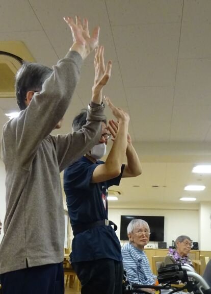 ご入居者代表、スタッフ代表としてそれぞれ男性の方が踊りの輪に加わり
