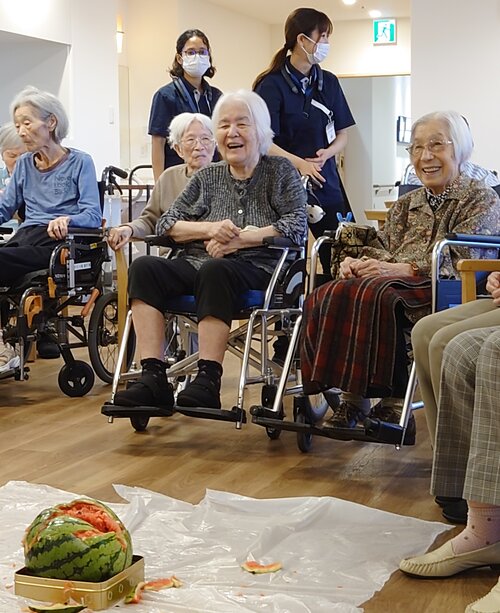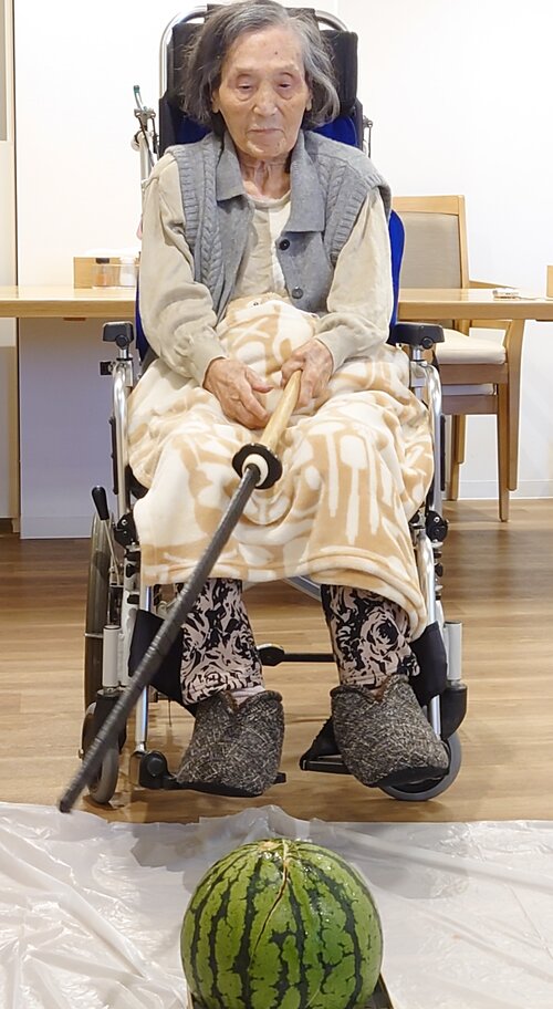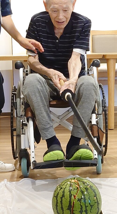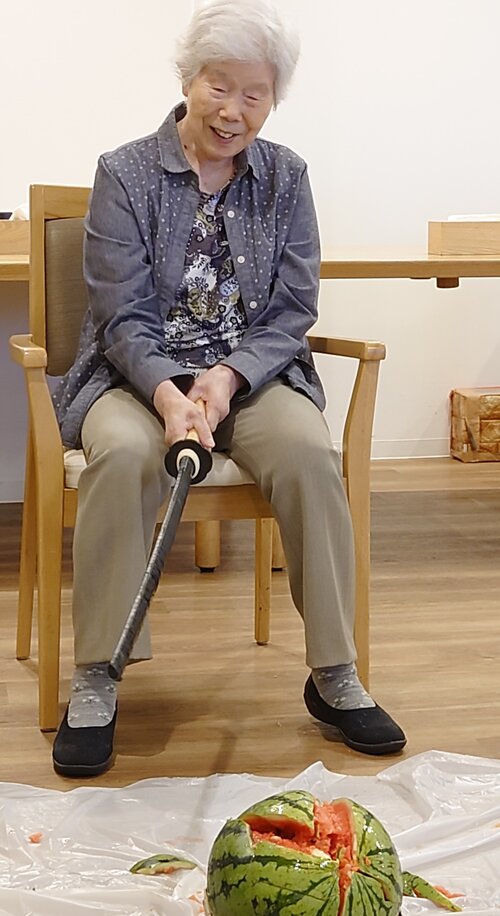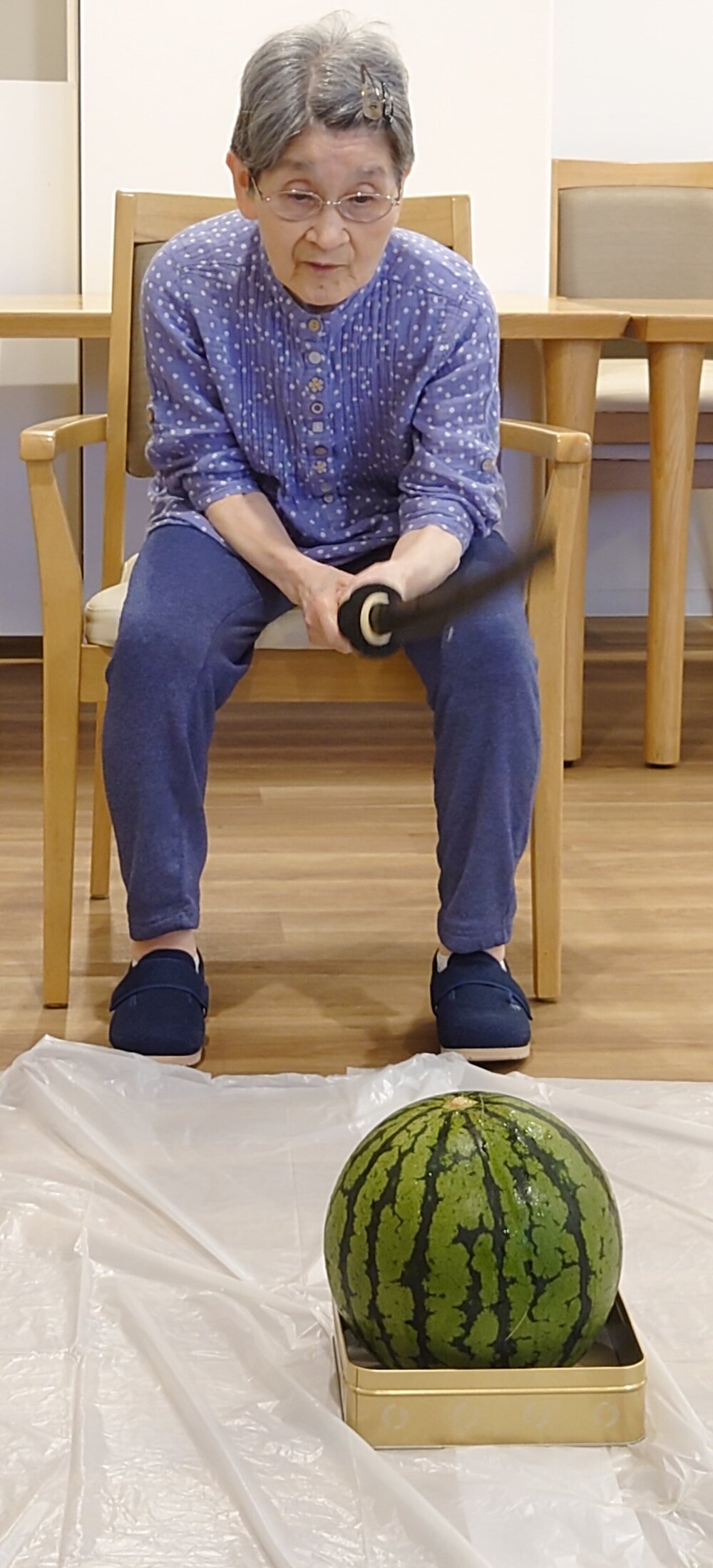 当ホームでは、夏の風物詩「スイカ割り」を開催しました。