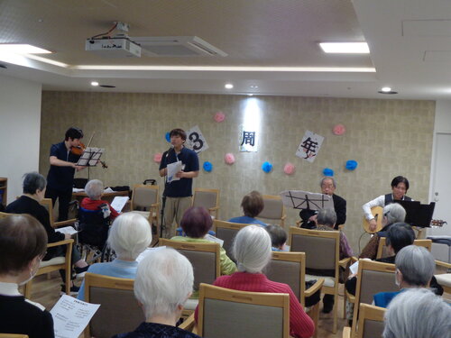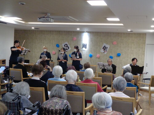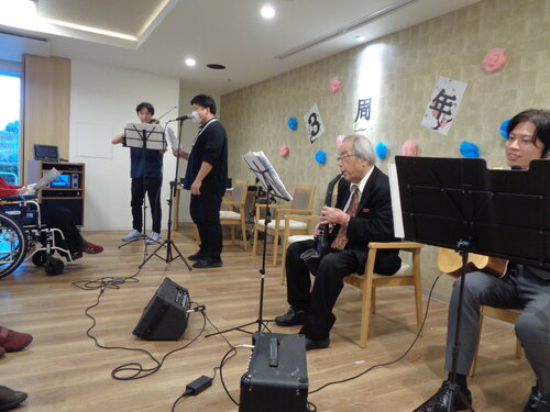 この日は、楽器演奏がお得意なご入居者とスタッフが一緒になって、