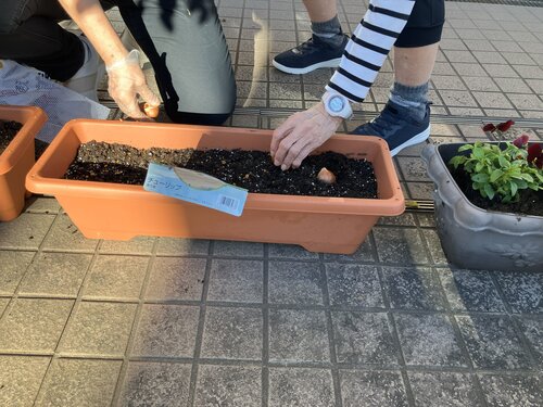 花壇を前に皆さまの表情は明るく、スコップを手にすると真剣そのもの。
