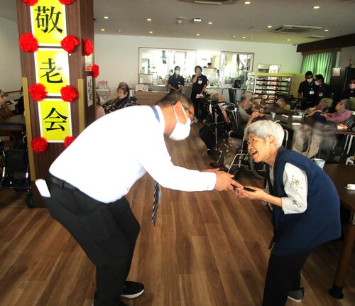 先月、9月15日の敬老の日には、ご入居者のご家族からたくさんのご面会や