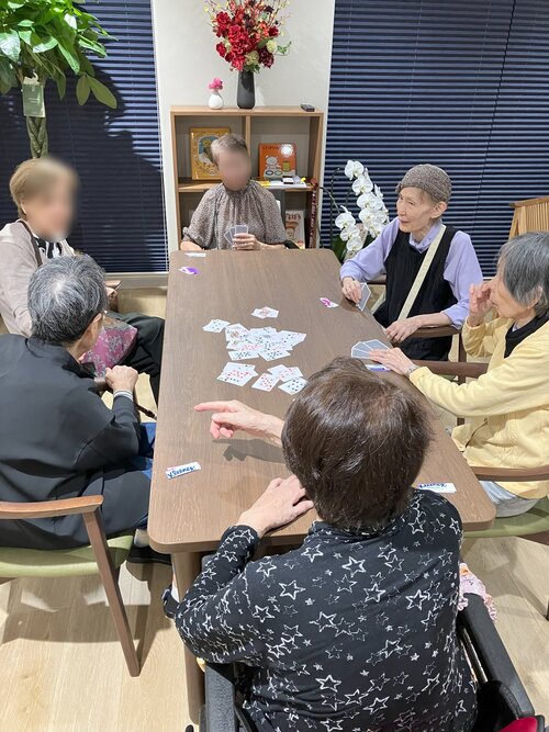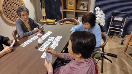 ご入居者同士で声を掛け合い、いつの間にか“夜な夜なカード大会”が毎晩の恒例に。